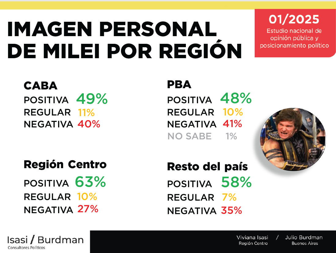 Milei tiene 55% de imagen positiva a nivel nacional. Y en la Región Centro tiene 15 puntos más que en la provincia de Buenos Aires.