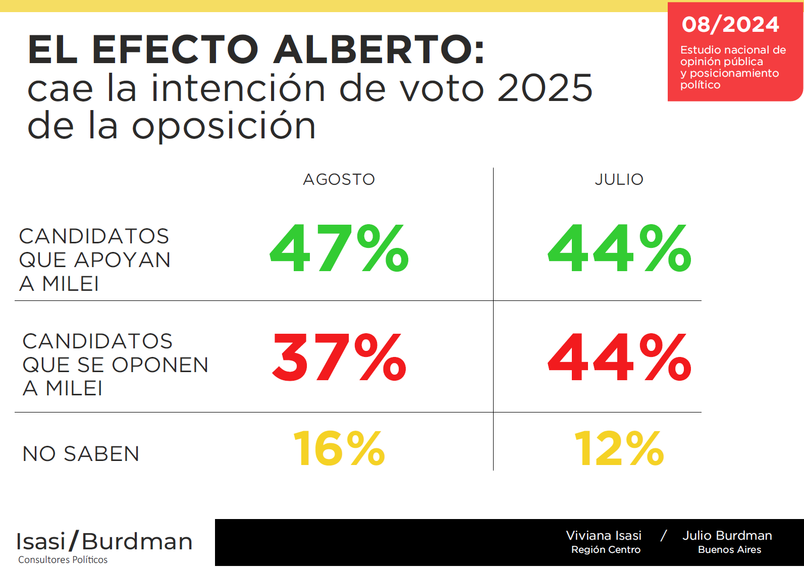 El primer impacto del Efecto Alberto se vio en la intención de voto 2025: el oficialismo capitaliza, el votante opositor sigue enojado pero duda.
