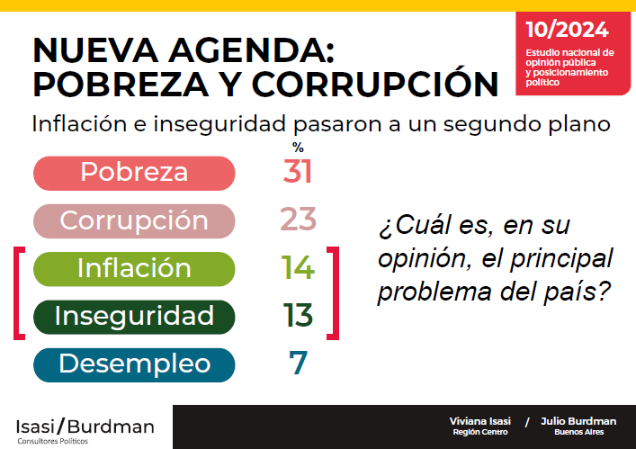 Los porteños consideran que la pobreza es el principal problema del país, seguido por la inseguridad y la corrupción.